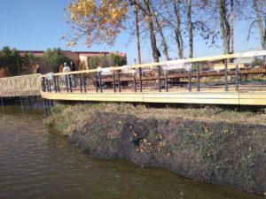 Наша команда профессионалов справилась с поставленными задачами на отлично. Были возведены пирсы на свайных основаниях, смотровая площадка, прогулочные мостики. Остров оборудовали площадкой из террасной доски, установили скамейки, соединили прогулочным мостом с прибрежной частью Эко-тропы. Отдельное внимание уделили любителям рыбалки, для них установили пирсы, оборудованные удобными скамейками и держателями снастей. Для проведения массовых мероприятий установили амфитеатр. Кроме того на протяжении прогулочной зоны установили скамейки и качели для комфортного отдыха всех групп населения.